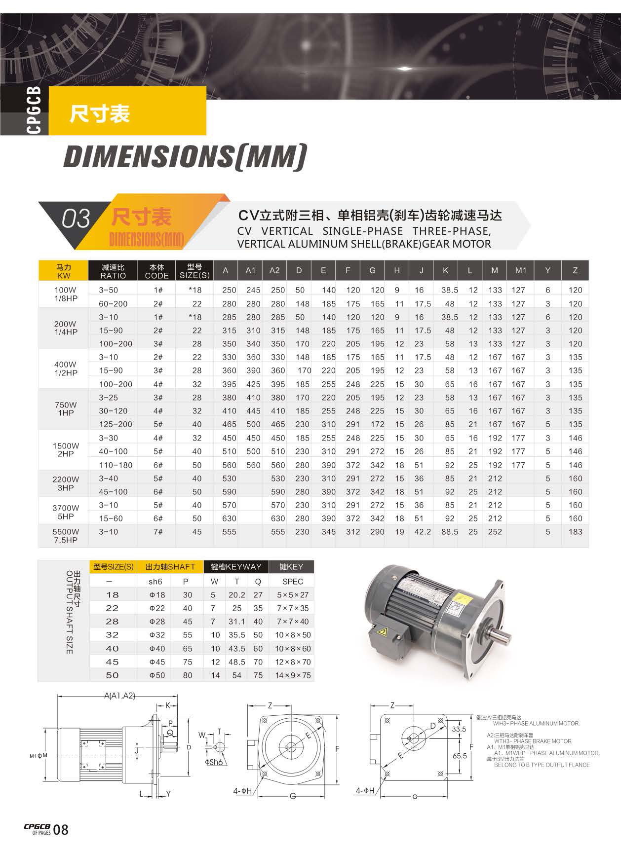 CV立式附三相、單相鋁殼(剎車(chē))齒輪減速馬達(dá)